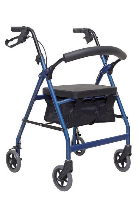 Опоры-ходунки оснащены предназначенным для отдыха мягким сиденьем из ПВХ, мягким полукруглым упором для спины и специальной корзиной для личных вещей. Оборудованы ручным и стояночным тормозами, а также механизмом для складывания роллатора (роллейтора). Регулируемая высота ручек от 79 до 90 см, высота сиденья — 56 см, ширина — 58 см, глубина — 62 см, размер корзины — 36х16х25 см, размер сиденья — 32х35 см, габариты в сложенном виде — 58х26х75 см, диаметр колес — 15 см, максимальная нагрузка — 110 кг, вес нетто — 6,3 кг.Характеристики: